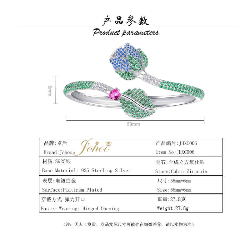 产品名称:玫瑰之约细腕美弹力开口手镯