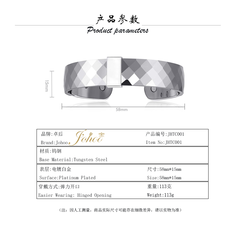 产品名称:钨钢时尚棱耀弹力开口手镯
